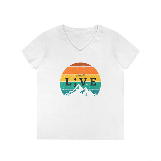 Ladies V-Neck T-Shirt Mountain L;VE Suicide Prevention Tee Shirt