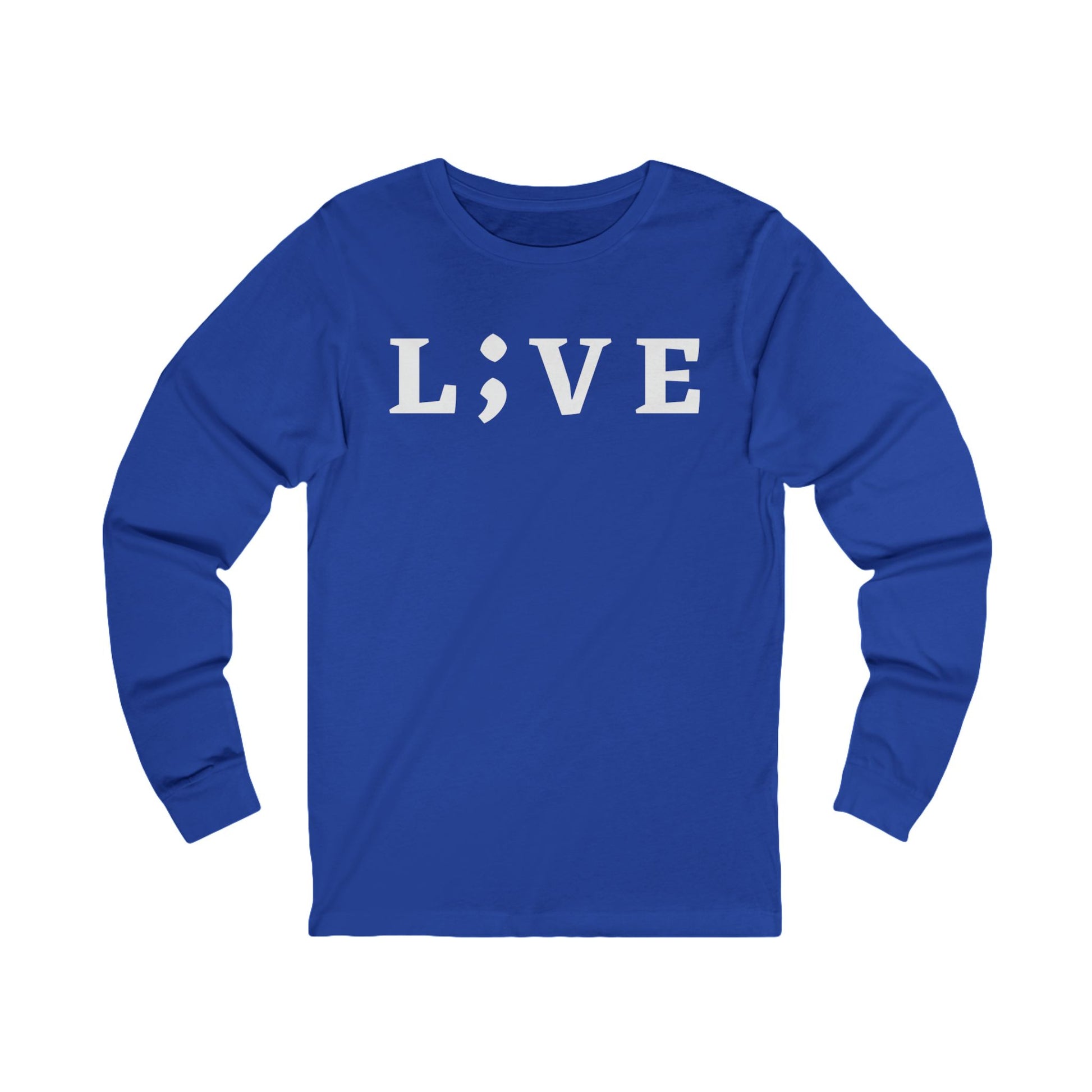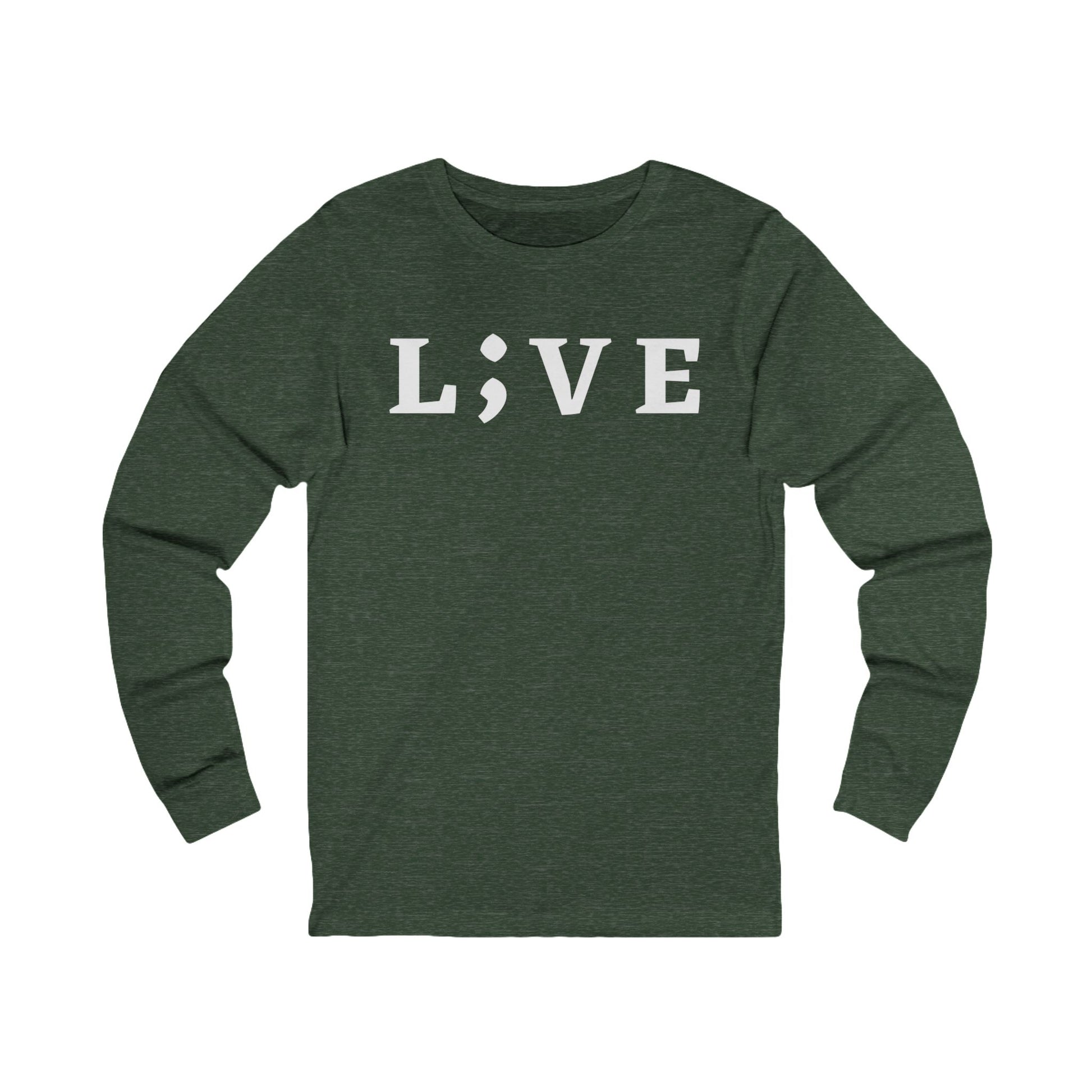 Spread awareness for suicide prevention with this Long Sleeve L;VE Tee. The design gives a message of hope and support, making it perfect for those passionate about mental health advocacy. Ideal for wearing during Suicide Prevention Awareness Month and World Suicide Prevention Day.