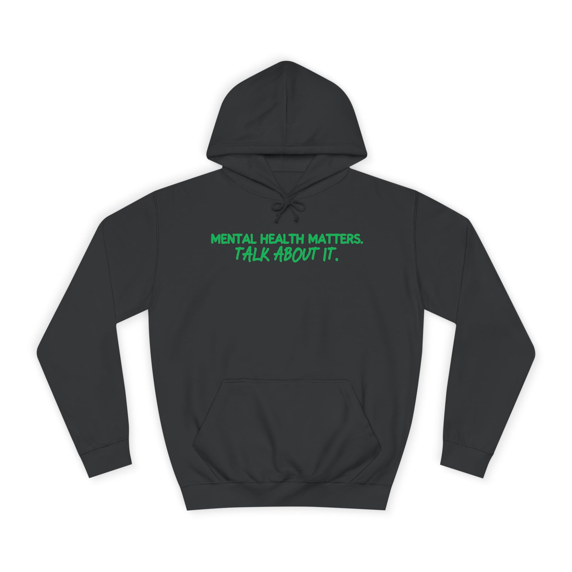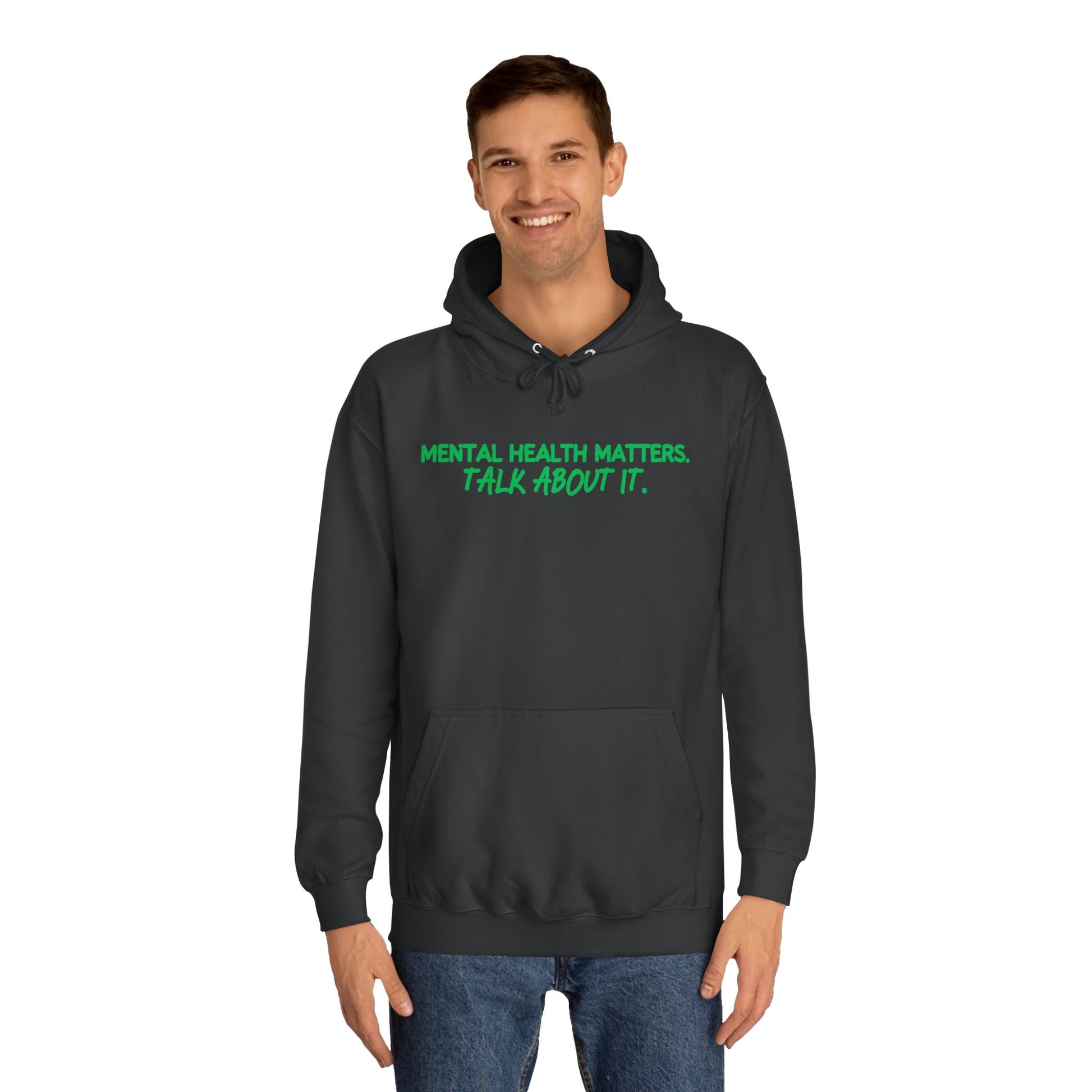 This cozy Unisex College Hoodie is designed to make a statement while keeping you comfortable and warm. With a roomy kangaroo pocket, it’s perfect for chilly days on campus or casual outings with friends. The vibrant green text and awareness ribbon embody a positive vibe and encourage meaningful conversations about mental health. Ideal for students, mental health advocates, and anyone who values comfort and style, this hoodie is suitable for everyday wear, as well as events like Mental Health Awareness Month, college gatherings, or even as a thoughtful gift for a friend. Its loose fit and soft fabric make it an essential part of your casual wardrobe, perfect for layering or wearing on its own. Bring awareness with style and comfort!