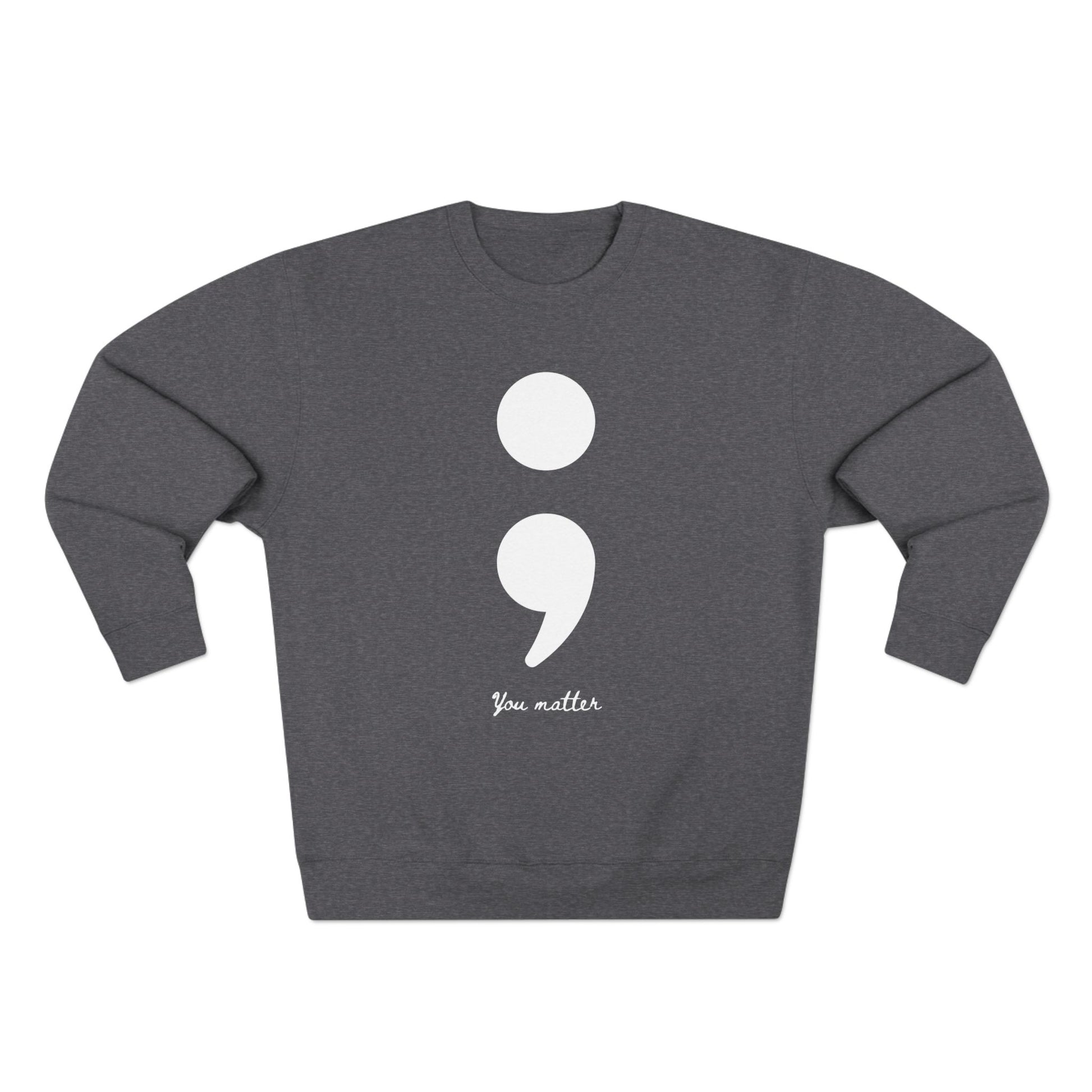 This Semicolon Series Crewneck Sweatshirt is perfect for raising awareness for suicide prevention. The design gives a sense of support and solidarity, making it ideal for those advocating for mental health awareness. It is relevant for Mental Health Awareness Month, World Suicide Prevention Day, and any other events highlighting mental health issues.
